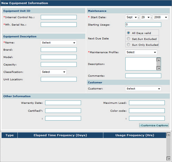 Click Here to see a demonstration video on Entering, Editing, and Deleting Your Equipment
