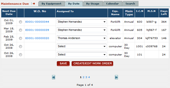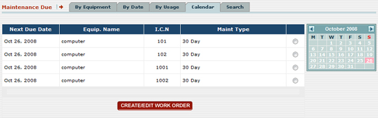 Click Here to see a demonstration video on Work Orders for Equipment Maintenance, which includes a demonstration on how to view maintenance due.