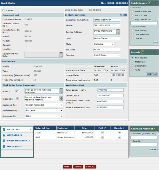 Creating Work Orders (For Scheduled Preventive Maintenance)