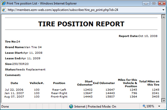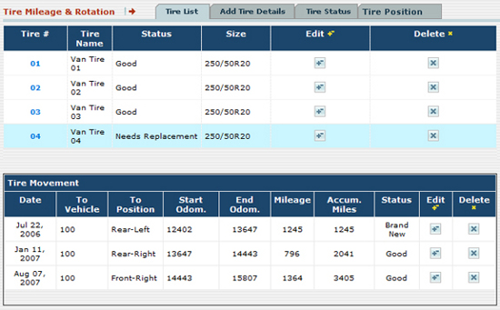 Click Here to see a demonstration video on Tracking Tire Mileage and Rotation.