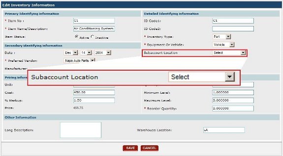 You can make the entry of what subaccount the inventory item belongs to a