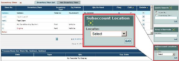Once you select the desired subaccount, then the list of inventory items is
